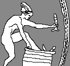 Y así la palabra «Orgía» se referiría a las prácticas de autoestimulación que realizarían las mujeres, como representantes de la Gran Diosa Lunar hermafrodita en la Tierra. Y estas prácticas han sido llevadas a cabo por sacerdotisas de diferentes cultos en todo el universo. Así las sacerdotisas Bilian de Indonesia, realizaban ritos sagrados para conjurar a los Espíritus, como ilustra la escultura de Bali (nuestro dibujo VIII 23), dedicada a la Diosa de la Fertilidad. Aparece masturbándose con ojos saltones y lengua fuera [representadas con lengua fuera como numerosas obras de arte simbólicas: de las Diosas Gorgonas griegas, de las Diosas mexicas Tzitzimime, de la Diosa Kali de La India,…). (Escultura de madera de Sacerdotisa Bilian de Diosa Rangda, con cabeza de primate y lengua fuera, único testimonio iconográfico que conocemos que representa crudamente la masturbación sagrada, de Balí, Indonesia, siglo XVII. Foto original publicada por PAREDES, T. (1988): La mujer y el arte. El Punto, Madrid).